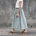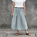 【即納】コットンリネン ロングスカート(グレイッシュブルー)リネン 麻 コットン ナチュラル グレイッシュ ブルー