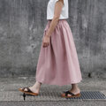 【即納】コットンリネン ロングスカート(グレイッシュピンク)リネン 麻 コットン ナチュラル グレイッシュ ピンク