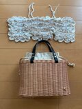 【1点在庫あり】手編みの籐かごバッグ/Megg Bag panier/パニエクロシェ・ホワイトフリル /かごバッグ