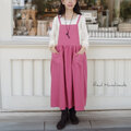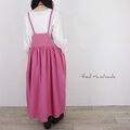 [Coordinate] ローズピンクのワッシャーハーフリネン・台形ヨークエプロンドレス