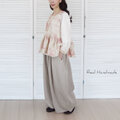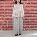 [Coordinate] コットンリネン〈モカグレージュ〉×刺繍ローンのフロントパネルキュロット(セットアップ対応)