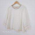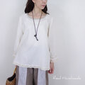 Wガーゼ〈シアバターカラー〉・レース袖ラウンドプルオーバー(リネンパイピング)