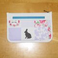 うさぎのシルエットと花などのパッチワークプリントに白の無地を合わせました。