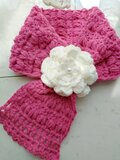 マフラー ショートマフラー ループマフラー コサージュ お花 ピンク 白 ホワイト パール 手編み 編み物 編み