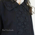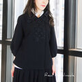 襟と胸元には繊細なフラワーモチーフのブラックケミカルレースを重ねて、