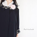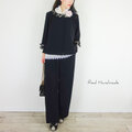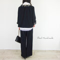・襟・袖口:ポリエステルワッシャー(ナチュラル)× ブラックケミカルレース