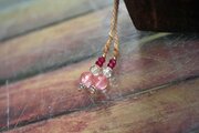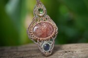 3石をマクラメ編み装飾して結んだ不思議な組み合わせ。