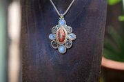 落ち着いた色ながら角度によっていろんな輝きになり、さりげない存在感。どんな服装にも合わせやすそうです。包装も素敵にまとめてくださり、ありがとうございます。また違う石たちにも挑戦してみたいです。