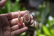 落ち着いた色ながら角度によっていろんな輝きになり、さりげない存在感。どんな服装にも合わせやすそうです。包装も素敵にまとめてくださり、ありがとうございます。また違う石たちにも挑戦してみたいです。