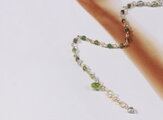 アネモネカラー・天然石と絹のネックレスパールの位置によって、長さはもちろんトップの形を変えられるのがユニークで変化が楽しめて嬉しいです。 以前ネックレスを落としてしまったことがあるので、被り式のネックレスは安心して身につけられて助かります。 ネック部分やタッセルがシルクで、汗ばむ季節にも肌あたりが柔らかそうで嬉しいです。トップに合わせたタッセルの色合いも好きです。 素敵な作品をありがとうございました!