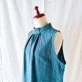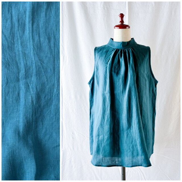 レディの夏服:ロマネノースリーブ(無地リネン:ターコイズ)