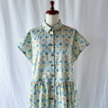 着丈115㎝(切り替えまで45cm)、肩幅62(フレンチ袖)cm、そでぐり40cm、バスト104cm、切り替え部分巾110cm、すそ幅212cm