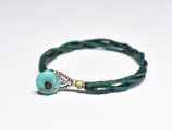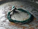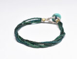アンティーク多彩グリーンシードビーズの4連ブレス(ターコイズ留め金)