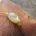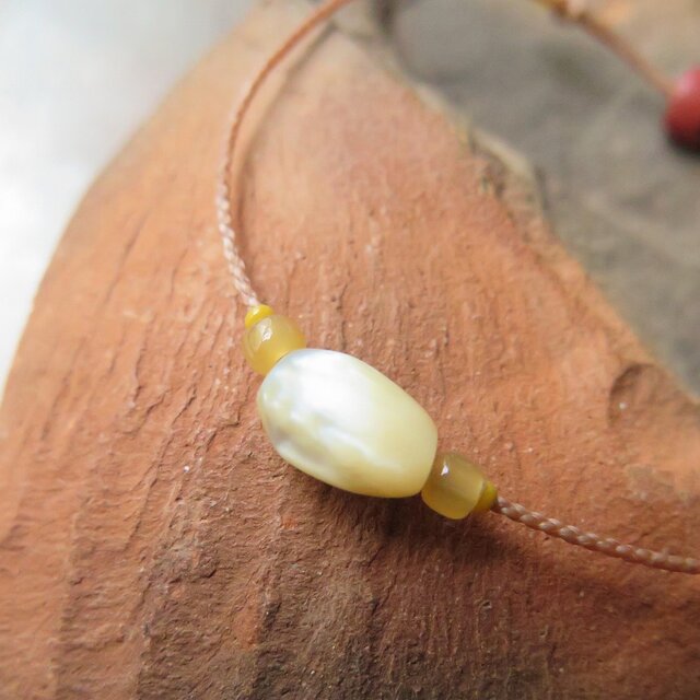 マザーオブパールの両脇には、蜂蜜のようなシードビーズを添えました。