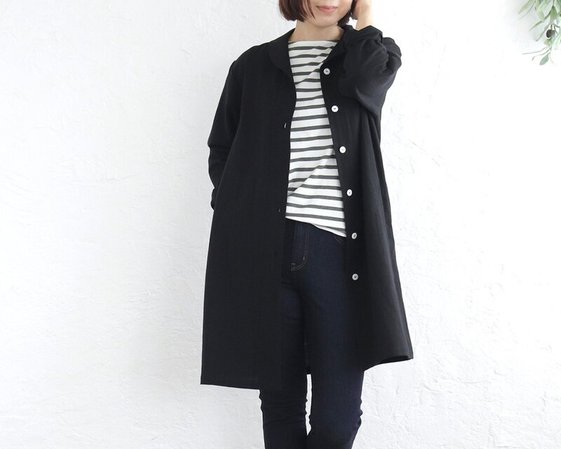 軽やかに羽織れる✦ 桐七炊きコットンリネン ショールカラーコート(ブラック)CO08