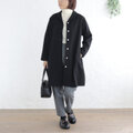 ・冬に:ニットやワンピースに重ねてあたたかく、厚手アウターを上から。