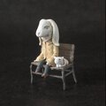 静かな午後、ウサギのマスクをかぶった子どもが、古びたベンチに腰かけている。隣には小さな白い相棒が寄り添い、ふたりは風の音だけを聴いている。子どもは何を思い、何を隠しているのか──その姿は、現実と夢の境界に立ち、孤独と優しさを同時に宿したひとつの物語の断片です。