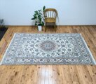 ナイン産は、ペルシャ絨毯の中でも特に繊細で緻密なデザインが特徴です。細やかな植物模様や幾何学模様が美しく、お部屋に華やかさを添えます。また、ウール素材の柔らかな肌触りと、光沢のある美しい色合いが魅力です。