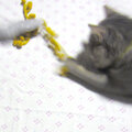 上から垂らして上下左右に、床で変則的な動きをつけて、投げたりケリケリ等、飼い主さんと一緒に楽しく遊んでいただけると思います。