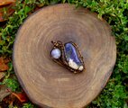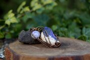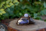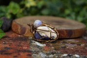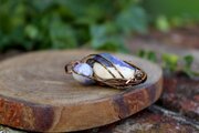 パープルとホワイトのコントラストが、とても印象的なティファニーストーンのタンブルです。マッドな質感を活かして、アンティークゴールドのワイヤーでしっとりと巻きました。