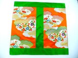 ■帯を繋いでリメイクいたしました。少し使用感のある帯地ですが色鮮やかで豪華さがあるマットです。