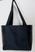 提げ手は、正絹の黒羽二重の着物を使い、幅3センチ長さ約40センチで付けています。