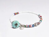 ホワイト&多彩アンティークヴェネチアビーズのブレス(ターコイズ留め金)