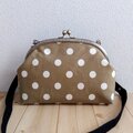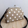 長財布も入る大きめ ドット帆布のがま口ショルダーバッグ 25cm口金 ベージュ 373