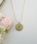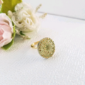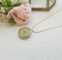 チェコガラスボタン ネックレス/リング選べる|グリーン×ゴールド 花模様 cnr0802