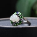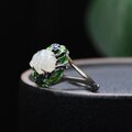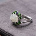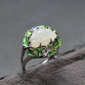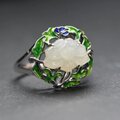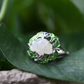 蓮の花をテーマにしたリング、この美しい作品はネフライトで作られた蓮の花を中心に、七宝焼の葉っぱが飾られています。このリングは、自然の美しさと職人の技を見事に融合させています。優しい緑色のネフライトが蓮の花を引き立て、七宝焼の葉っぱが繊細な彩りを加えています。このリングを身につけることで、季節を問わず蓮の花の静かな美しさを感じることができるでしょう。特別な日の贈り物や、自分自身へのご褒美としても最適です。この作品は、自然への敬意と美へのこだわりが詰まった、唯一無二のアクセサリーです。
