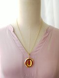 ヴィンテージ 赤とGoldのカメオ(32㎜Round)秋に素敵なネックレス