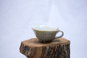 作品は作者の技術力の高さを感じさせる作陶にスピード感のある、また更に迷いを一切感じさせない逸品です。灰を混ぜた様なクリーム色の釉薬は、実際には有る様で実はない、独自の世界感を作り出しています。
