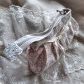 ファスナーエンドは可愛いヴィンテージのコットンレースでくるんでいます。