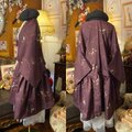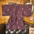 【着物 2way ガウン 羽織り ドレス ワンピース ハンドメイド 和洋折衷 洗える 化繊 リメイク 帯サッシュベルト レトロ 古着 深い葡萄茶にほのかな艶。 KD-56 】