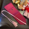 合わせの帯ベルトは深い臙脂。淡桃のタッセルコードが揺れて、装いをきゅっと上品に。