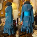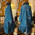 【着物 2way ガウン 羽織り ドレス ワンピース ハンドメイド 和洋折衷 洗える 化繊 リメイク 名古屋帯サッシュベルト レトロ 古着 深い青緑(ピーコックブルー寄り) KD-57 】