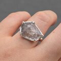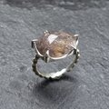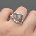 ルチルクォーツ with ライモナイト インクルージョンの塊 変形5角形ラフカット シルバーSV925リング