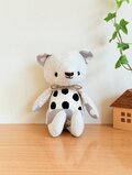 顔と手足、胴の部分にはポリエステルの手芸綿を詰めています。綿を入れる量をパーツごとに調節することで、手足は柔らかくクッタリとした感じ、顔の部分はシッカリと型崩れのないようになっています。