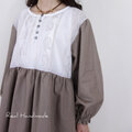 コットンリネン〈モカグレージュ〉×刺繍・ループボタンのペプラムブラウス(セットアップ対応)