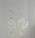 白い花が繊細なレースフラワーとかわいいハムスターをデザインしてモビールにしました。