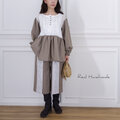 コットンリネン〈モカグレージュ〉×刺繍・ループボタンのペプラムブラウス(セットアップ対応)
