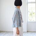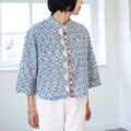 ブロックプリントコットンゆったりスリーブシャツ【ブルー】