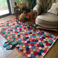 本日届きました。 早速リビングに敷いたところです。 写真どおりの素敵な色柄です。 ひとつ残念だったのは重みのためか、 包装紙が一部破れていました。 幸いなことに中身に影響はありません。 角や辺など擦れやすいところは二重にする等していただくと良いかと思います。
