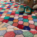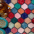 カラフルなモロッカンタイル柄が目を惹く均等柄のトルコヴィンテージラグ