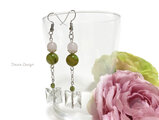 ローズクォーツ アゲート ピアス イヤリング チェーン 緑 黄緑 ピンク 天然石 ☆ ダイナデザイン ☆ シルバー カラー