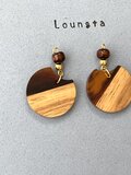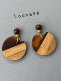 ウッドビーズピアス バイカラー 樹脂ピアス