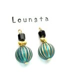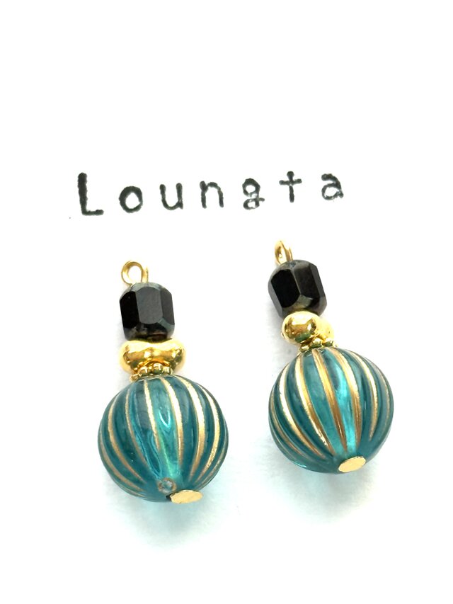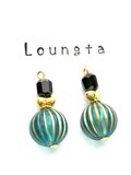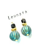 チェコビーズピアス ブラック ブルー 小ぶりピアス 樹脂ピアス