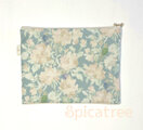 オリジナル柄布ポーチ「薔薇とセキセイインコ ベージュ×渋ミント」
