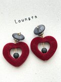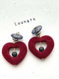 秋冬ピアス ベロア素材 ハート レッド 大ぶりピアス 樹脂ピアス