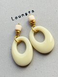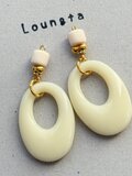 アイボリーの大ぶりピアス レトロ 樹脂ピアス